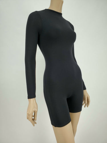 Long Sleeve Mock Neck Romper with Zipper (Black)