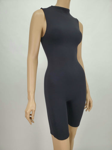 Sleeveless Mock Neck Romper with Zipper (Black)